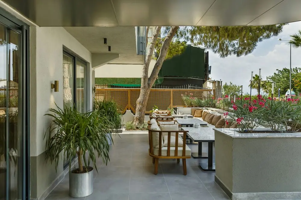 2 Garden Suite (35 м²,одна двуспальная кровать, зона гостиной, гардеробная, ванная (душ), терраса, зона отдыха и шезлонг на террасе, макс. 2+1 чел.);