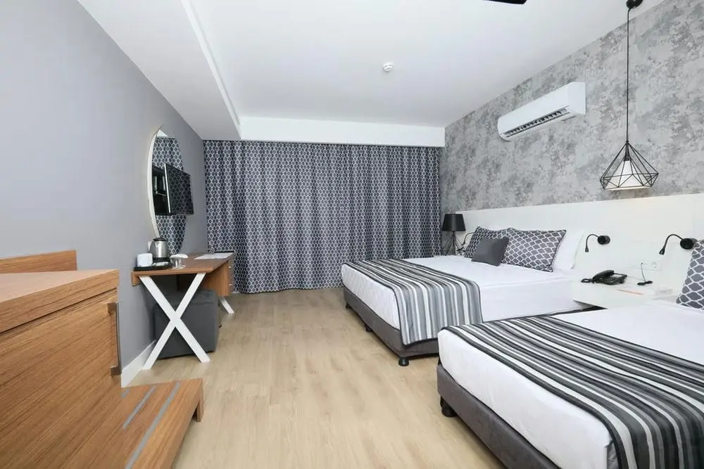 в 11 км от аэропорта, в 13 км от центра г. Анталья, в 700 м через дорогу от собственного пляжа.