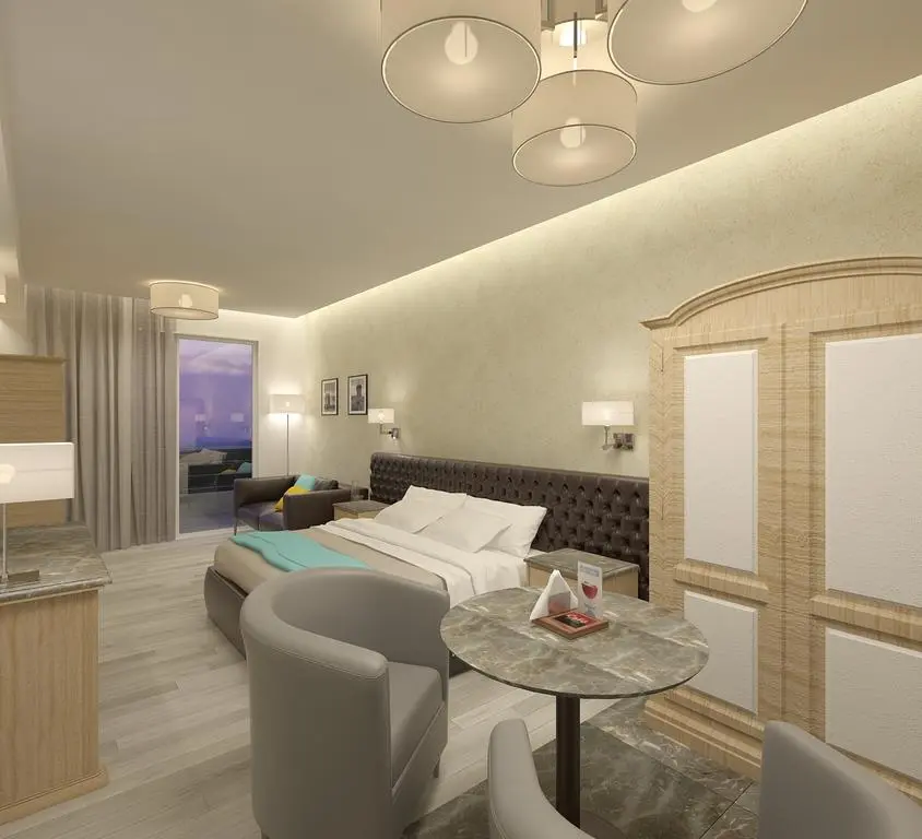 Каждая комната декорирована в современном стиле и оснащена такими удобствами, как душевая комната, двухспальные или односпальные кровати, кондиционер и центральное отопление, спутниковое телевидение, возможность делать чай и кофе в каждой комнате, большая ванная, холодильник, бар, фен и телефон. Также однокомнатные и двухкомнатные апартаменты оснащены небольшой кухней, на которой вы найдете все необходимое для приготовления пищи (кастрюли, тарелки, вилки, ложки и так далее). В любое время вы можете бесплатно воспользоваться услугой беспроводного интернета Wi-Fi в лобби гостиницы.