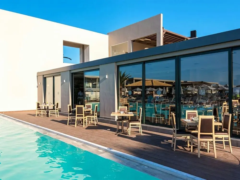 Западное побережье Крита, в 1 км от пос. Герани, в 4 км от Платаньяса, в 14 км от города Ханья, в 27 км от аэропорта г. Ханья. Отель полностью обновлен в 2017 году.