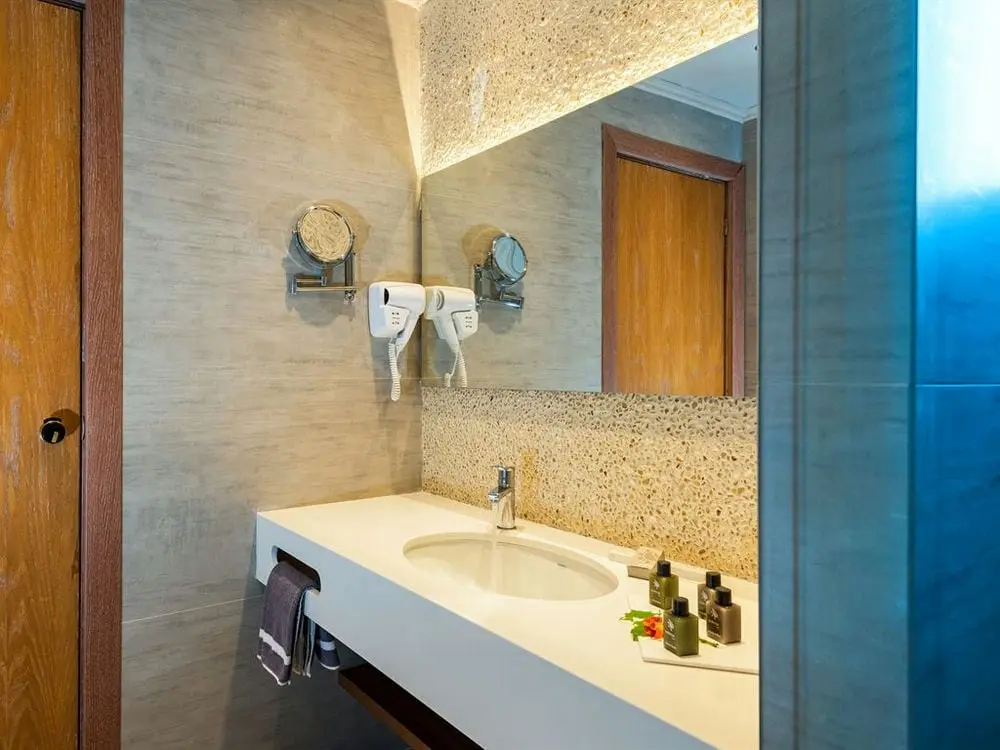 В номерах: центральный кондиционер, спутниковое ТВ, smart TV, мини-холодильник, душ, фен, прямой телефон, платный Wi-Fi интернет, сейф, балкон/терраса.