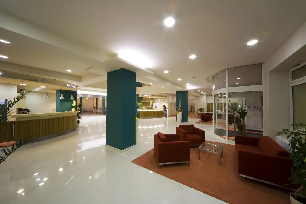 - Suite - оборудованные новым оснащением, номера люкс Suite, пользуются у гостей большой популярностью. Они представляют высокий стандарт размещения в больших номерах со спальней, отделенной от гостиной, и возможностью дополнительной кровати. И, конечно, Вы найдете здесь телефон, сейф и мини-бар. Вы можете воспользоваться бесплатным Wi-Fi подключением к интернету. При бронировании, можно заказать номер Suite с балконом. Большие современные ванные комнаты оснащены: ванной, двумя умывальниками, туалетом, феном и косметическим зеркальцем. Во время пребывания, Вы будете обеспечены основными гигиеническими принадлежностями - гостиничными простынями и полотенцами, халатом и тапочками.