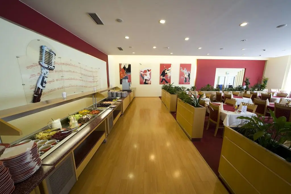 Обед - шведский стол: выбор из 3 видов бульонов, включая 1 холодный, 5 вторых блюд, включая 1 вегетарианское, 3 гарнира, овощи, возможность диетического и рационального питания, большой выбор салатов, фрукты, десерты, возможность питания а la carte в «Restaurant Opera» за доплату
