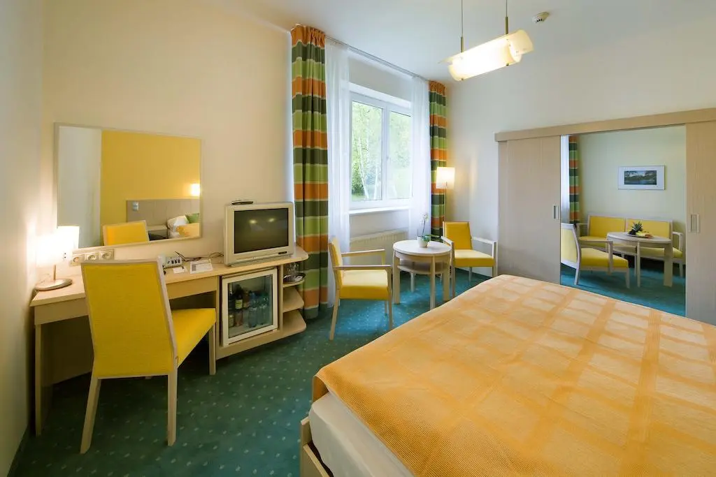 - Single Standard Rooms, Double Standard Rooms - заново отремонтированные, одноместные и двухместные номера в санатории «Спа Ресорт Сан суси», Карловы Вары, предлагают гостям четырехзвездный комфорт за разумную цену. Номер с современной обстановкой оснащен телефоном, мини-баром и сейфом. Вы, также, можете воспользоваться бесплатным Wi-Fi подключением к интернету. В ванных комнатах есть ванна или душ, умывальник, туалет, фен и косметическое зеркальце. Во время пребывания, Вы будете обеспечены основными гигиеническими принадлежностями : халатом, гостиничными простынями и полотенцами. В некоторых номерах есть балкон; эти номера можно заказать при бронировании поселения.