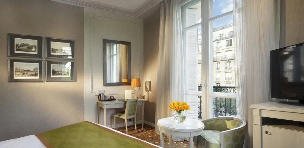 Все номера отеля Splendid Etoile оформлены люстрами и роскошными тканями. Каждый номер оснащен мини-баром, некоторые оборудованы балконом с видом на Триумфальную арку.