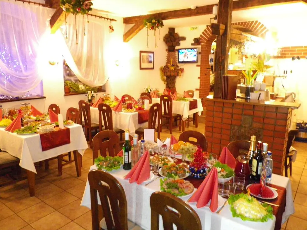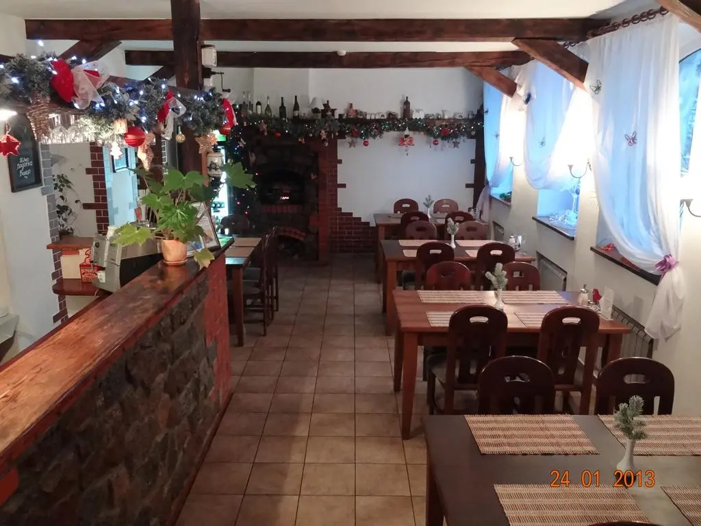 Обращает на себя внимание кафе отеля, выдержанное в средневековом стиле, выполненное из натуральных материалов: камня, кирпича и дерева. Особенно привлекательны вход в виде арки и уникальная печь-камин.