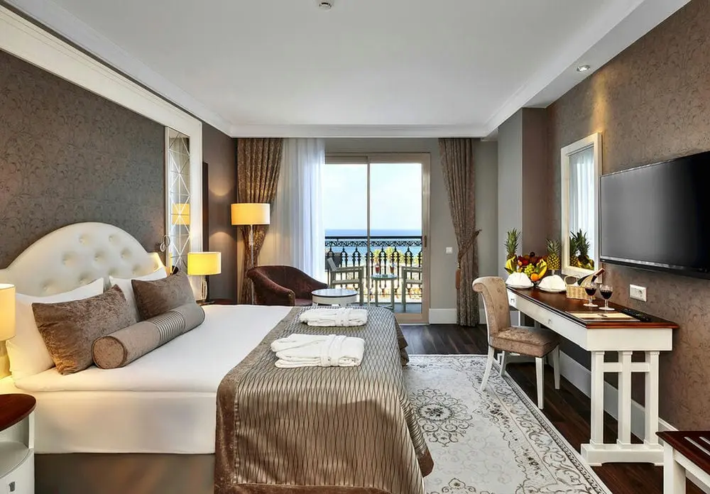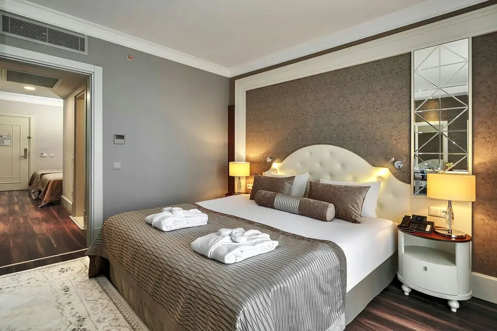 Номера в курортном спа-отеле Sunis Efes Royal Palace отличает элегантный интерьер. Они располагают балконом и кондиционером. В каждом номере установлен мини-бар, электрический чайник, телевизор с плоским экраном со спутниковыми каналами и сейф. Гостям предоставляется бесплатный WiFi.