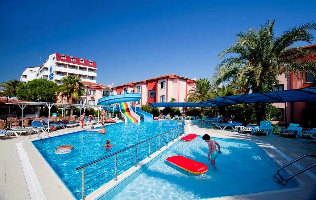в 55 км от аэропорта г. Анталья, в 12 км от г. Манавгат, в 9 км от г. Сиде, в 2 км от поселка Чолаклы, в 250 м от собственного пляжа.