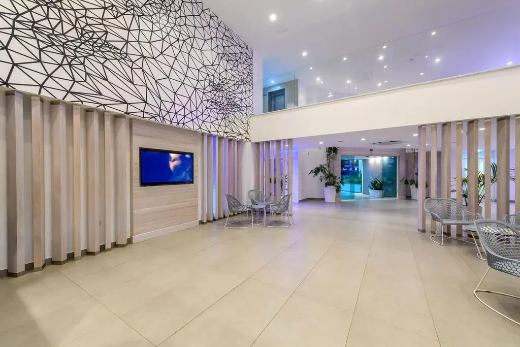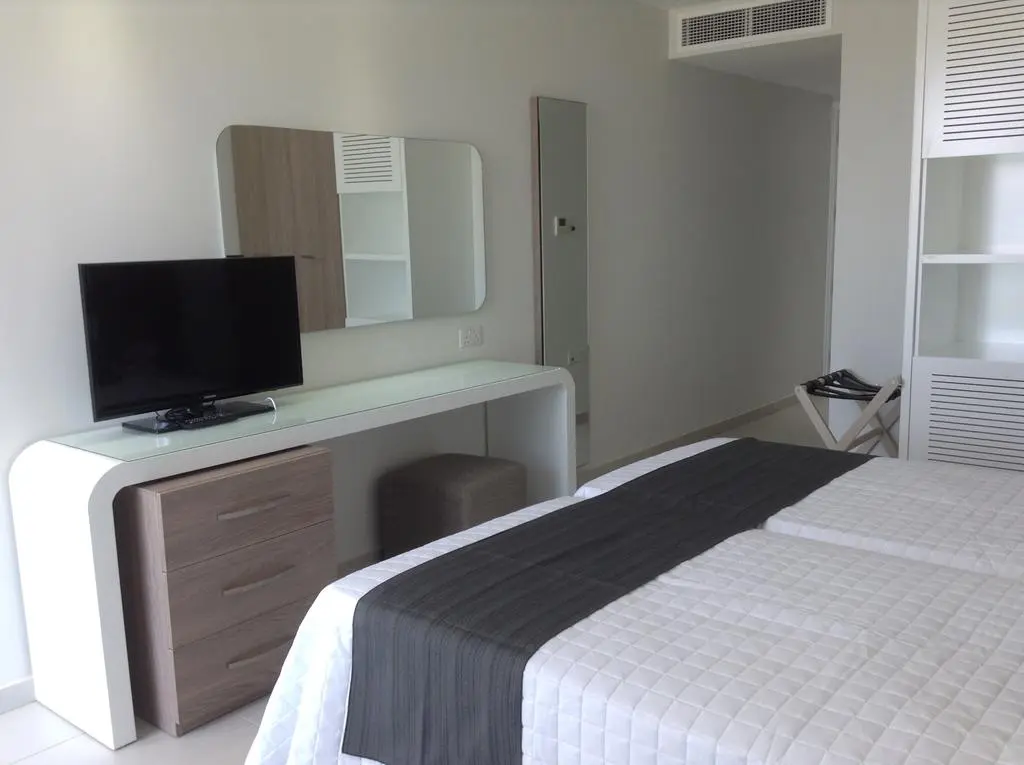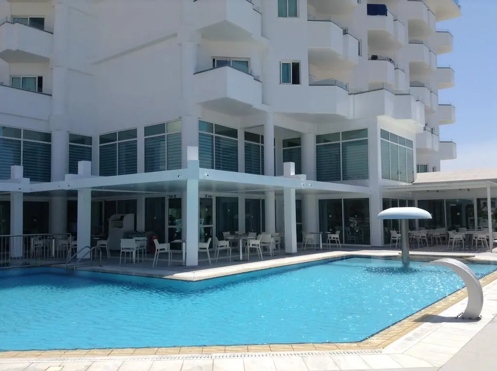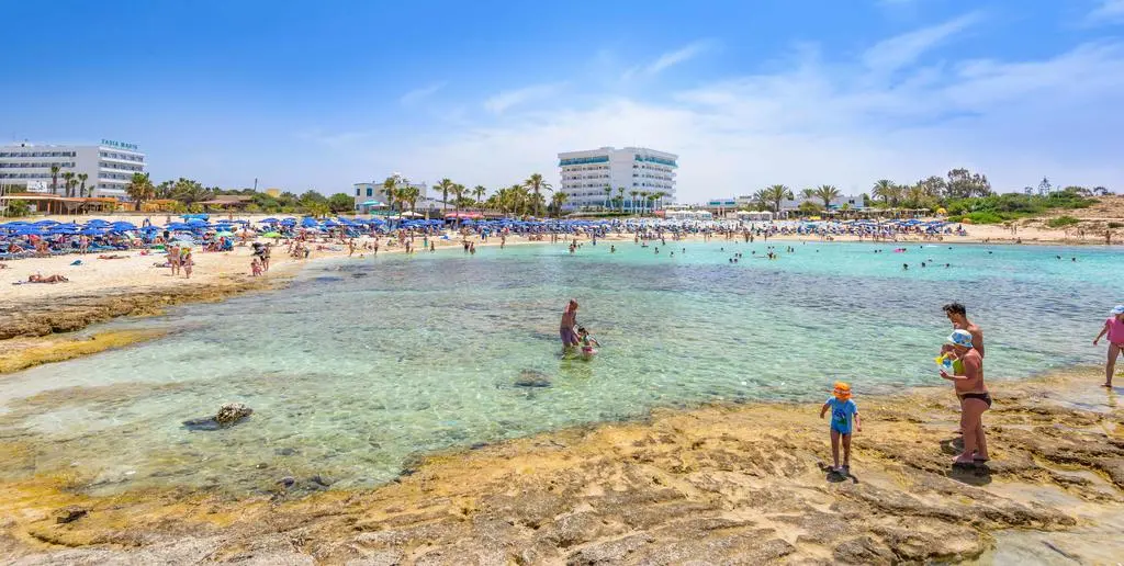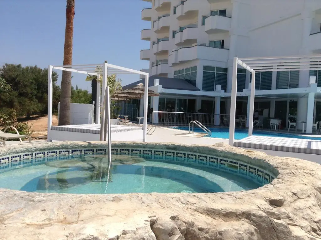 в 50 км от аэропорта города Ларнака, в центре курортного города Айя-Напа, в 600 м от пляжа.