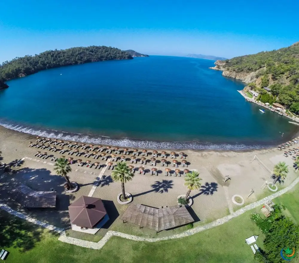 На пляже шезлонги, зонтики, матрасы и полотенца: бесплатно.
