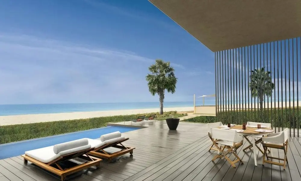 8 Premium One Bedroom Villa with Private Pool (210 м2, вид на море, одна спальня, кровать king-size, ванная комната с видом на частный внутренний дворик, гостиная, кухня (микроволновая печь, тостер, холодильник, но приготовление пищи не допускается), терраса 38 м2, с собственным бассейном с регулируемой температурой (длина 7 м.) и шезлонгами, душ на открытом воздухе, непосредственный доступ к пляжу, макс. 3 или 2+2 чел.),