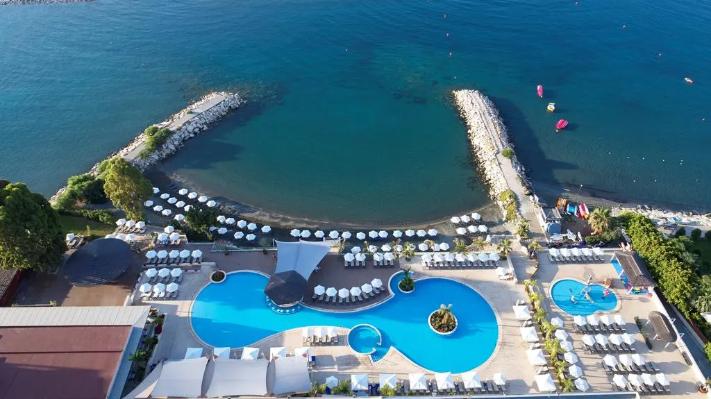 на берегу моря, в 68 км от аэропорта Ларнаки и в 5 км от центра Лимассола.