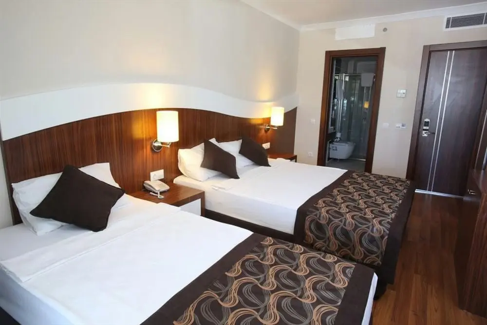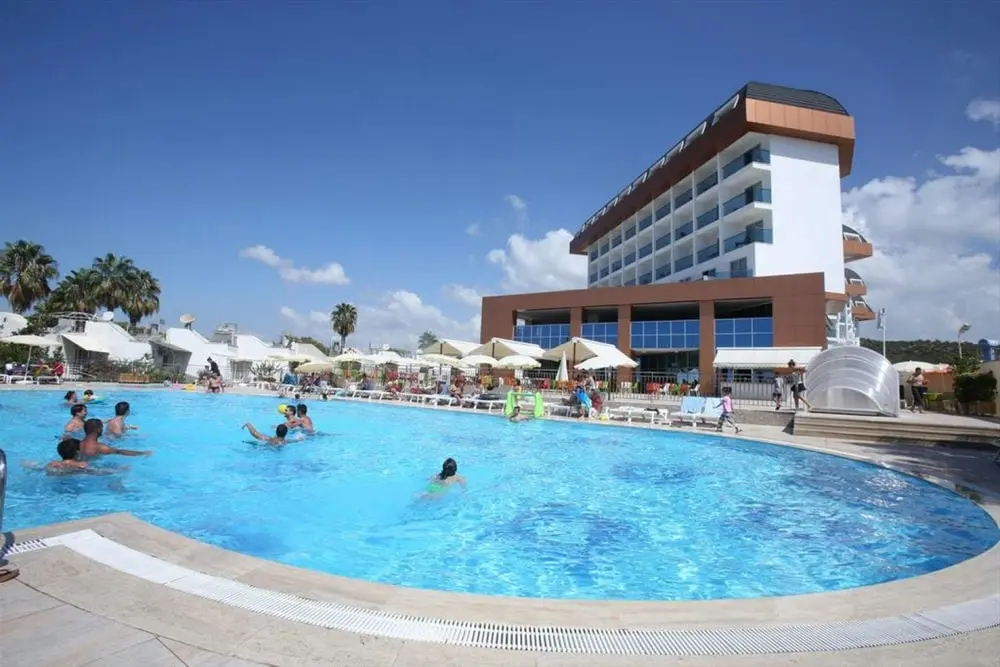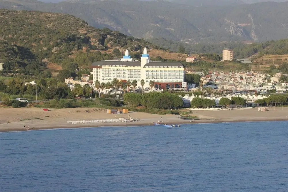 в 80 км от аэропорта г. Анталья, в 15 км от г. Манавгат, в поселке Ореншехир, в 300 м через дорогу от собственного пляжа по подземному переходу.