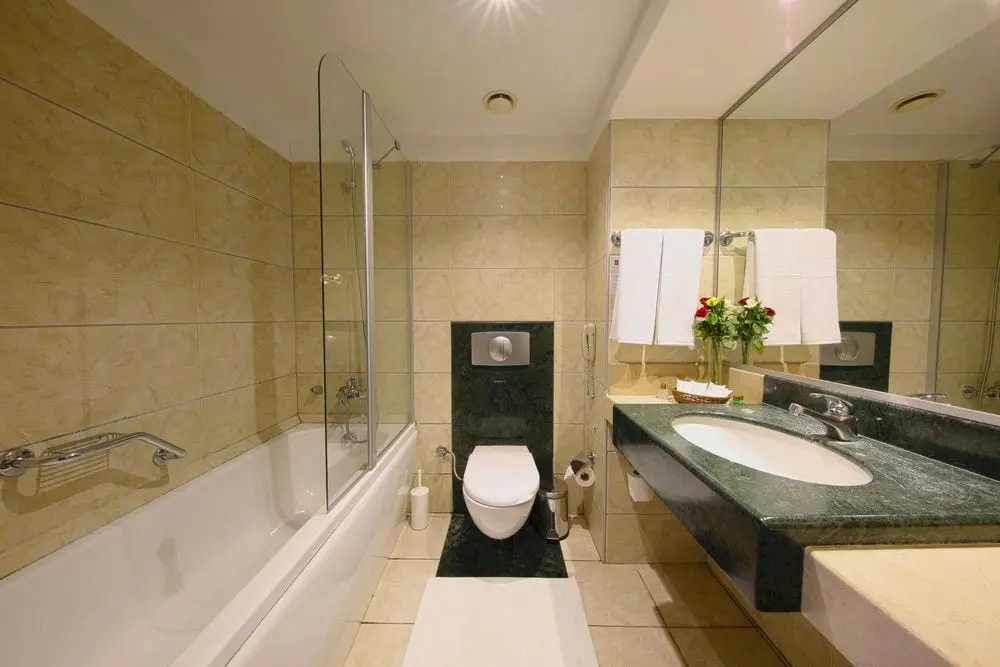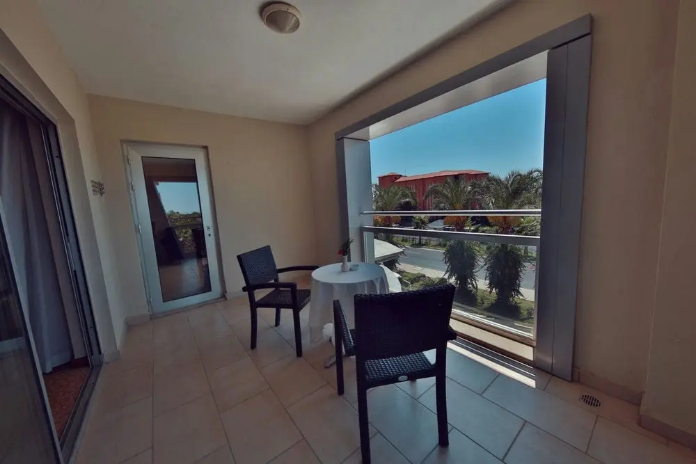 В номерах представлено: центральный кондиционер (работает в зависимости от погодных условий, в определенный часы), мини-бар (пополняется водой 1,5 л, ежедневно), спутниковое ТВ с российскими каналами, прямой телефон, интернет, музыкальный канал, ванная комната, фен, сейф (платно), балкон.