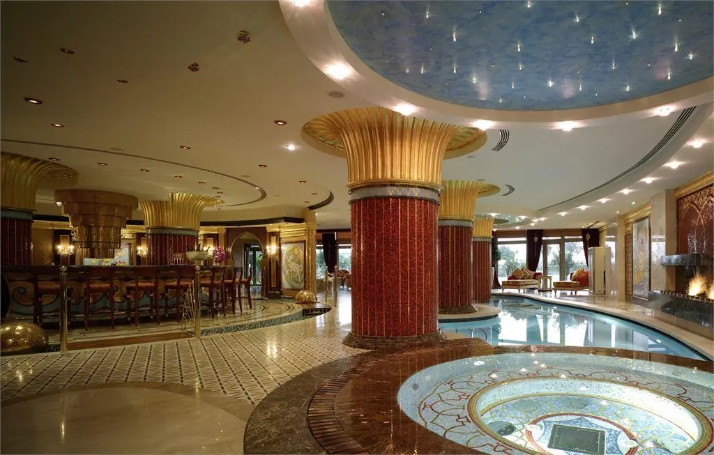 King suite (расположен на 8-м этаже, 2 спальни, 2 ванные комнаты (джакузи, сауна (в одной комнате), 1 кинотеатр-playstation, кухня, рабочий кабинет, гостиная, 2 террасы (на одной террасе шезлонги,зона отдыха, неглубокий бассейн, макс. 5+1, 600 м2).
