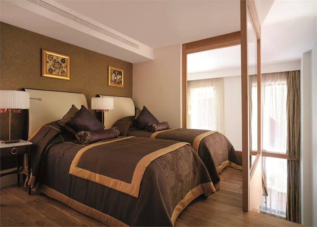 Grand duplex suite (расположен на 5 этаже, на верхнем этаже – спальня, джакузи, гостиный уголок; на нижнем этаже – 2 раздельные кровати, гостиная; макс. 5+инф, 145 м2);