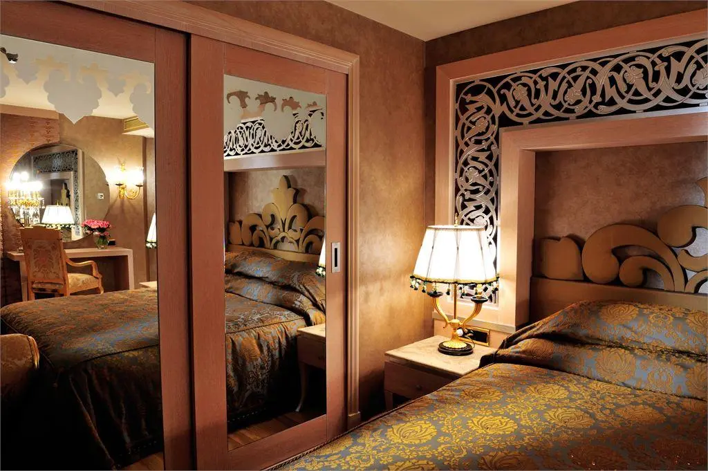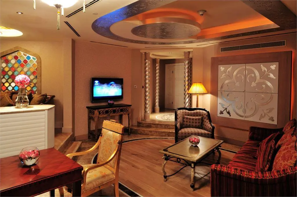 Royal duplex suite (на верхнем этаже спальня, турецкая баня, джакузи; на нижнем этаже – спальня, гостиная, терраса c шезлонгами, павильоном и джакузи; макс. 5+инф, 145 м2);