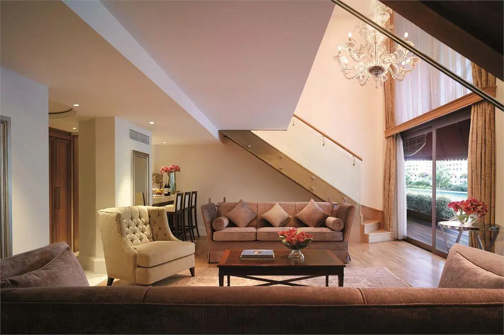 Premium pool duplex suite (на верхнем этаже 2 спальни с дверью, 2 ванные комнаты, на нижнем этаже – мини-кухня (мини-холодильник, микроволновая печь, обеденный стол; 22 м2 терраса с выходом к бассейну с шезлонгами, макс. 5+инф, 110 м2);