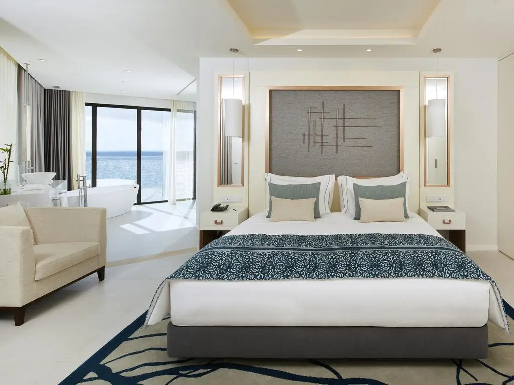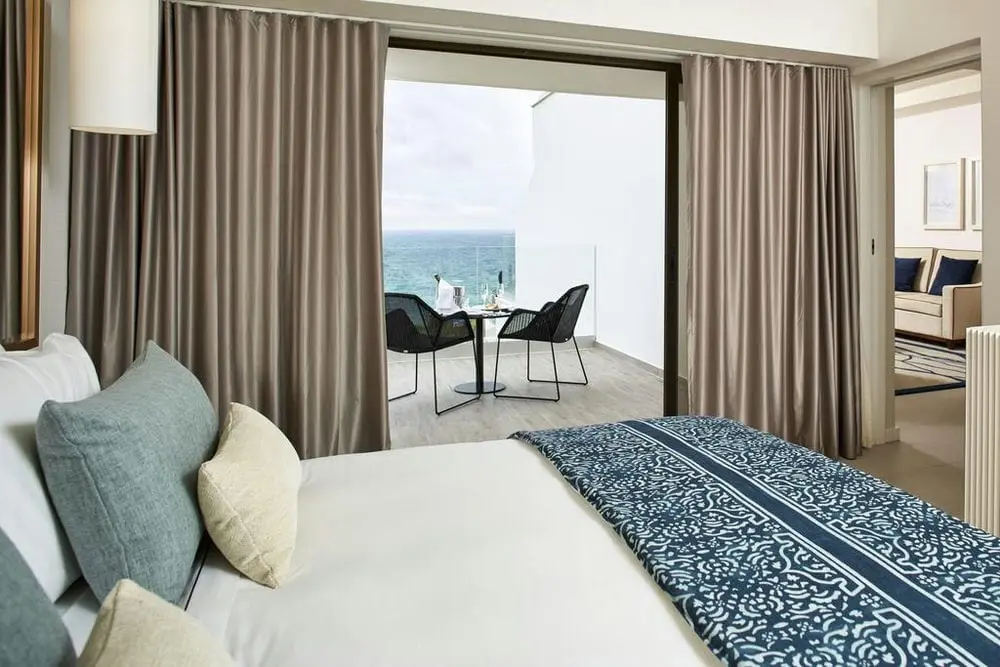 Sea View Junior Suite (51 м2, макс. 3 чел.) номера на 6 этаже, в номере двуспальная кровать, отдельная гостиная, меблированный балкон с видом на Атлантический океан.