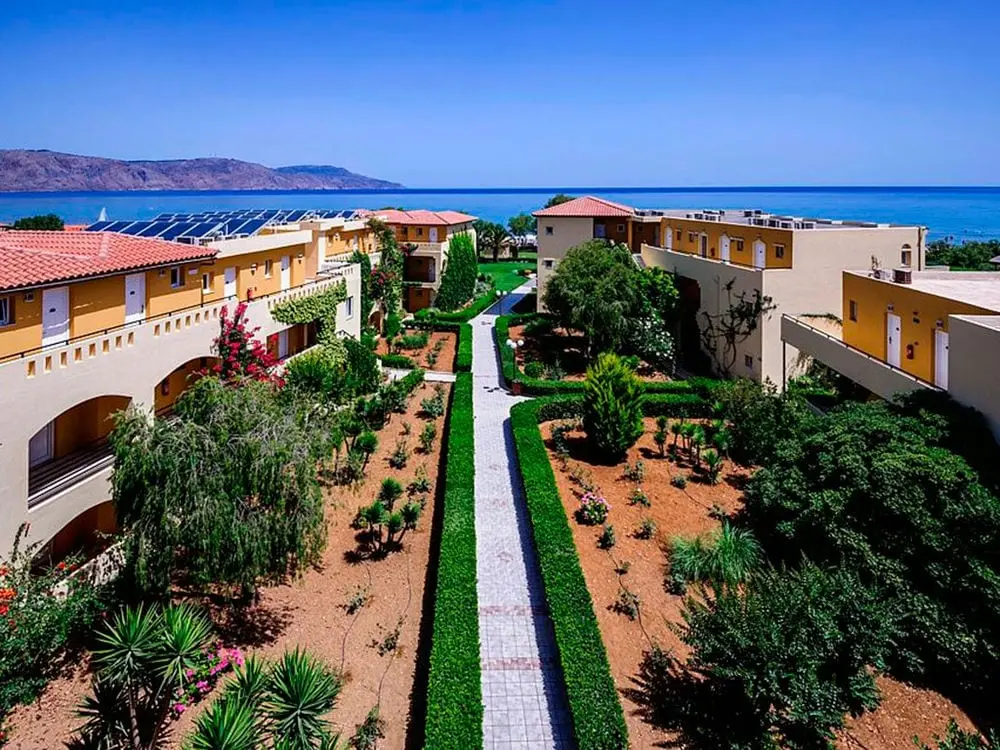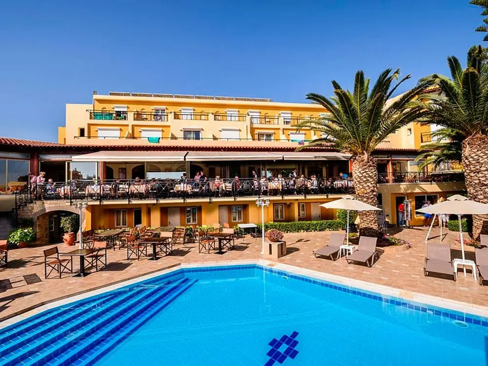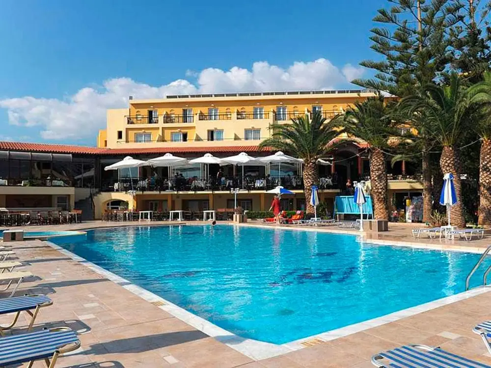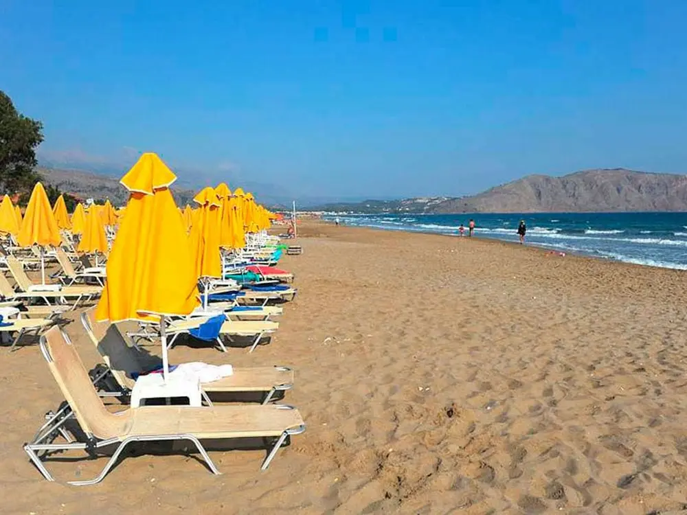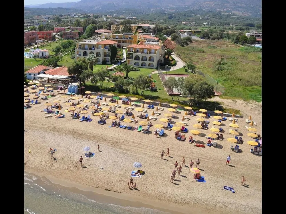Северное побережье острова, в 4 км от курортного городка Георгиуполис, в 45 км от аэропорта Ханья, в 40 км от г. Ханья, в 98 км от г. Ираклион, в 18 км от г. Ретимно. 7 небольших зданий. 1-ая береговая линия.