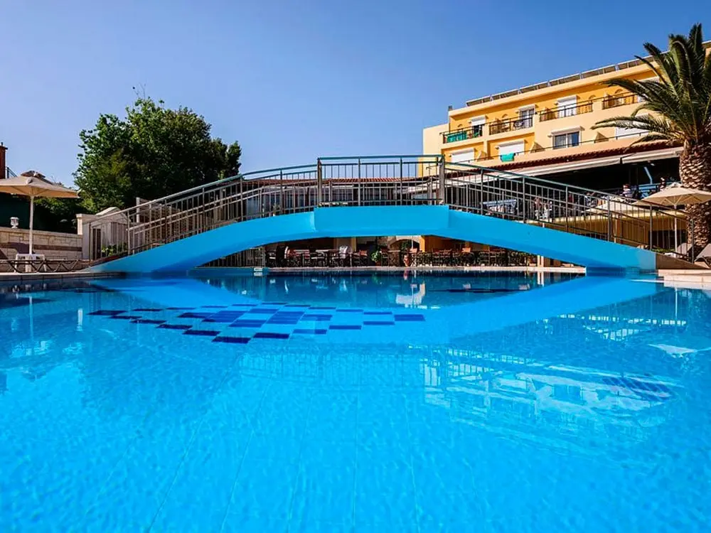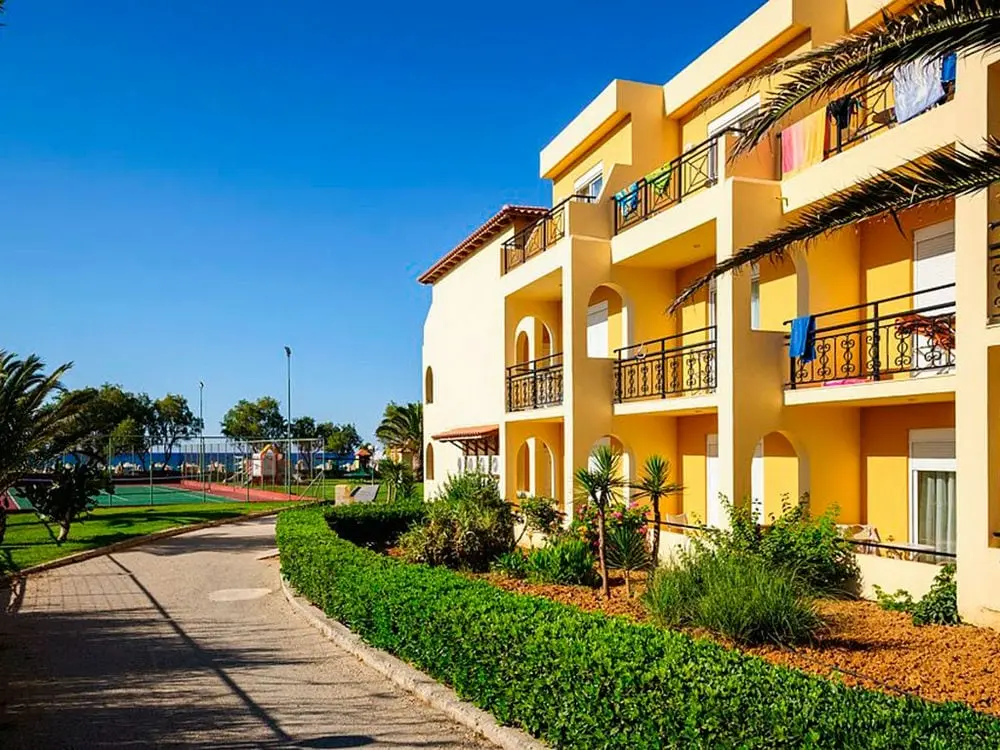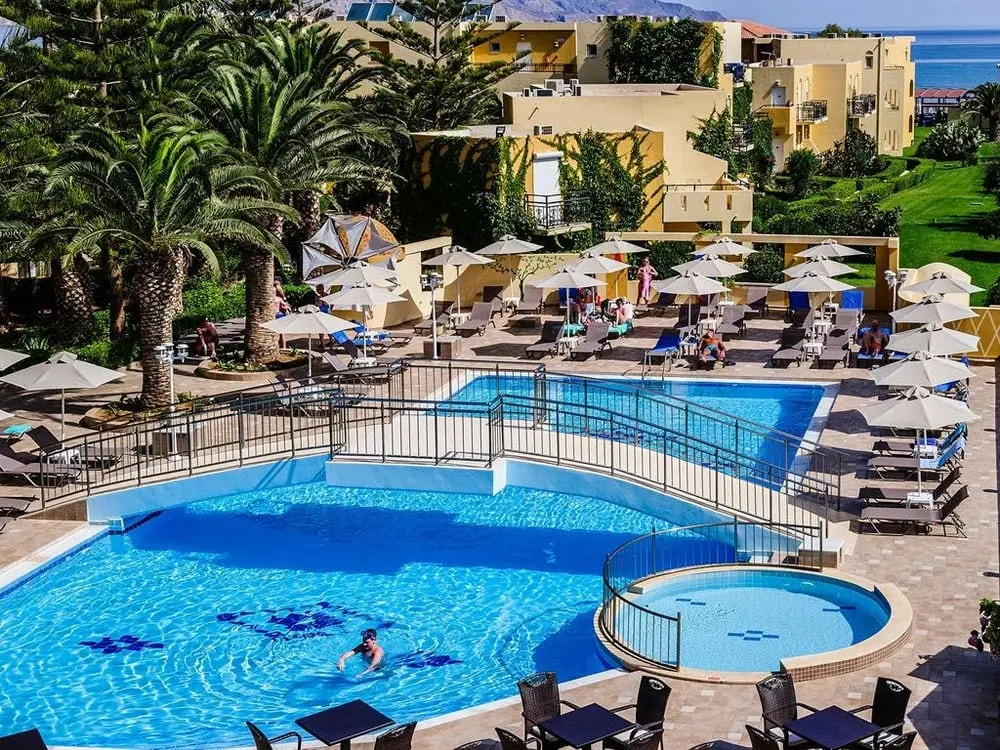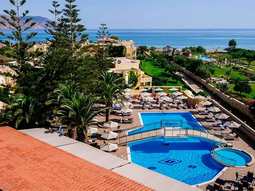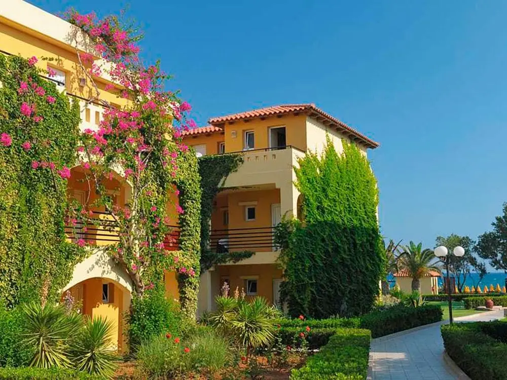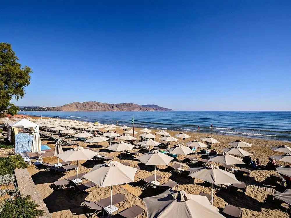 Северное побережье острова, в 4 км от курортного городка Георгиуполис, в 45 км от аэропорта Ханья, в 40 км от г. Ханья, в 98 км от г. Ираклион, в 18 км от г. Ретимно. 7 небольших зданий. 1-ая береговая линия.
