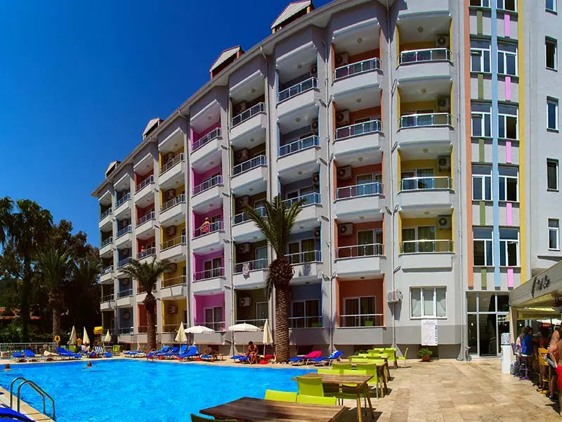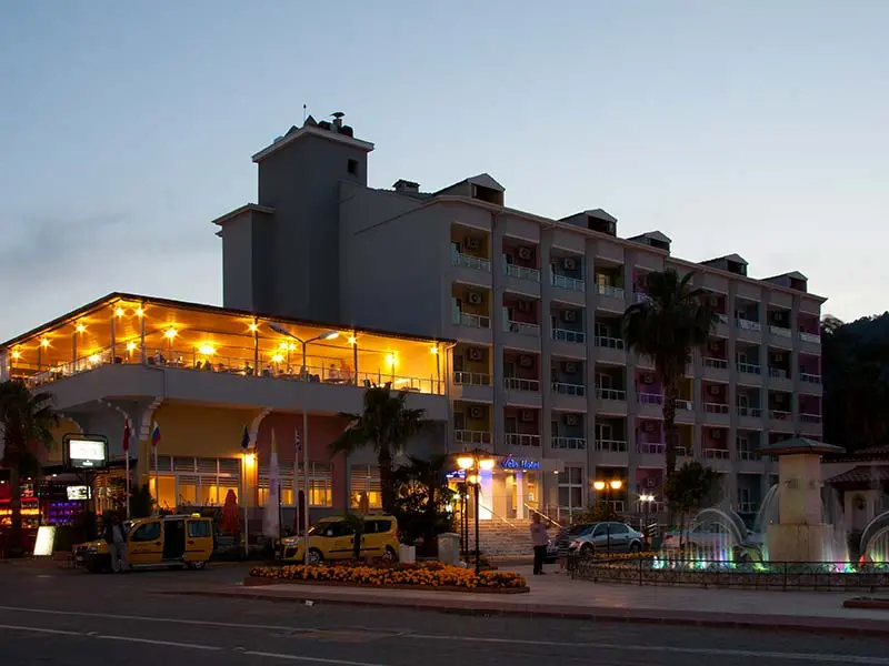 в 105 км от аэропорта г. Даламан, в 140 км от аэропорта Милас Бодрума, в поселке Ичмелер, в 9 км от центра г. Мармарис, в 200 м от городского пляжа.