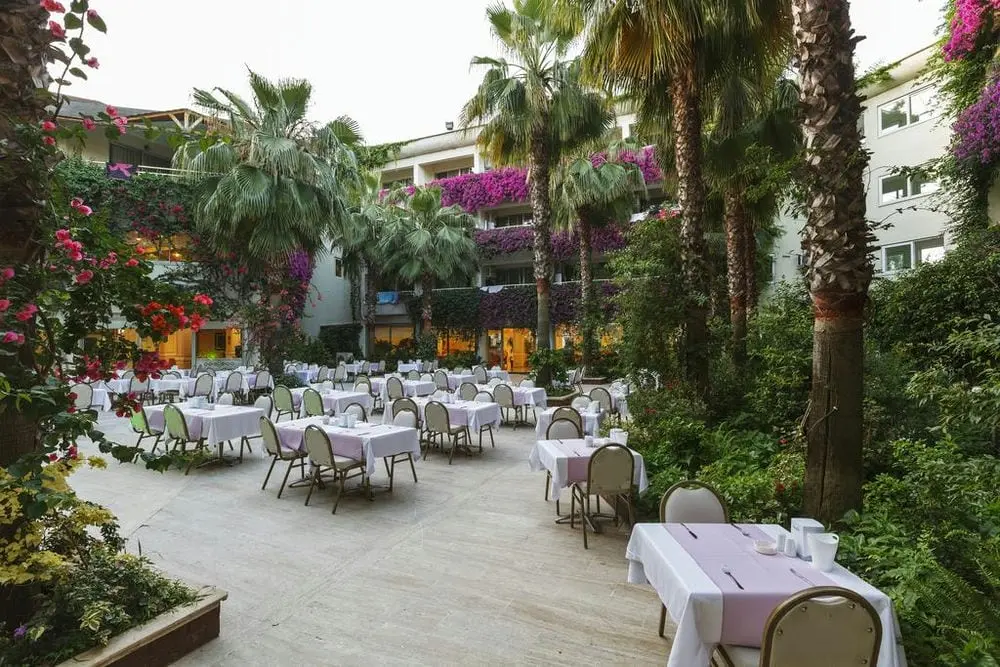 в 65 км от аэропорта г. Анталья, в 7 км от г. Сиде, в поселке Титреенгёль, в 350 м от собственного пляжа.