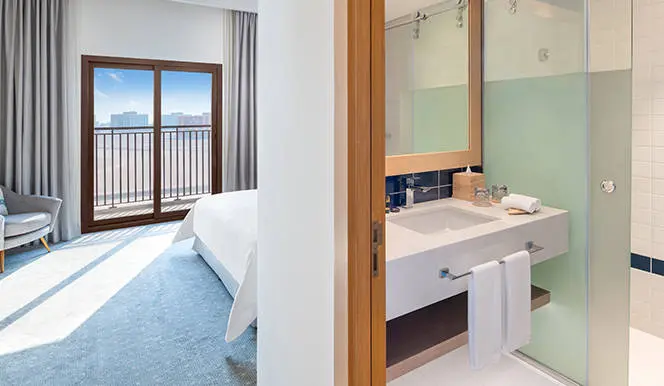 12 One Bedroom Suite Sea View (70 м2, вид на море, гостиная и спальня, двуспальная кровать, ванная комната с ванной и душем, балкон, макс. 3+1 чел.).