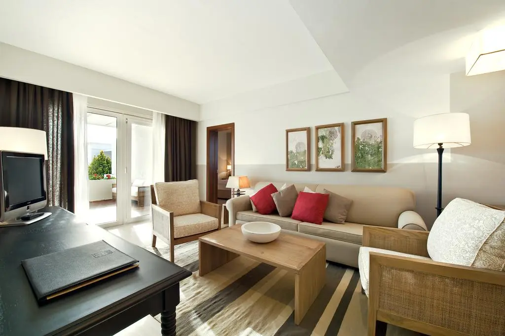 Просторные и современные номера курортного отеля Vincci Costa Golf располагают паркетным полом. В отдельной гостиной зоне установлен телевизор со спутниковыми каналами.