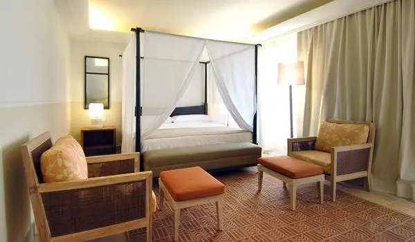 Superior Frontal Sea View (40 м2, мин. 1+0/макс. 3+0 чел.) расположены на третьем этаже отеля, большая спальня с кроватью размера "king-size" с балдахином, зона отдыха, отдельная гардеробная, балкон, боковой вид на море, фронтальный вид на море.