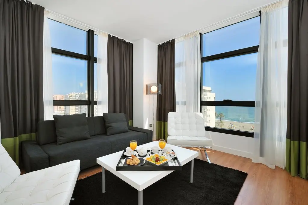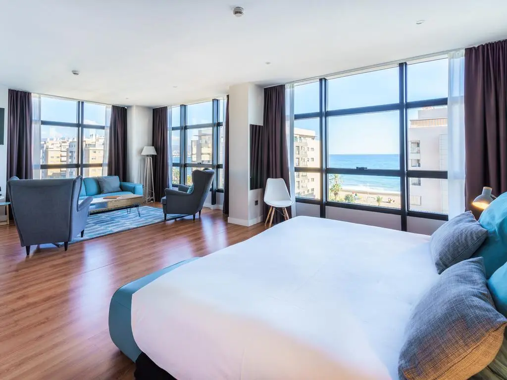 Элегантные номера отеля Vincci Málaga оформлены в белом цвете с черными и зелеными акцентами. В каждом номере с мини-баром предоставляется выбор подушек, а в отделанной мрамором ванной комнате - фен.