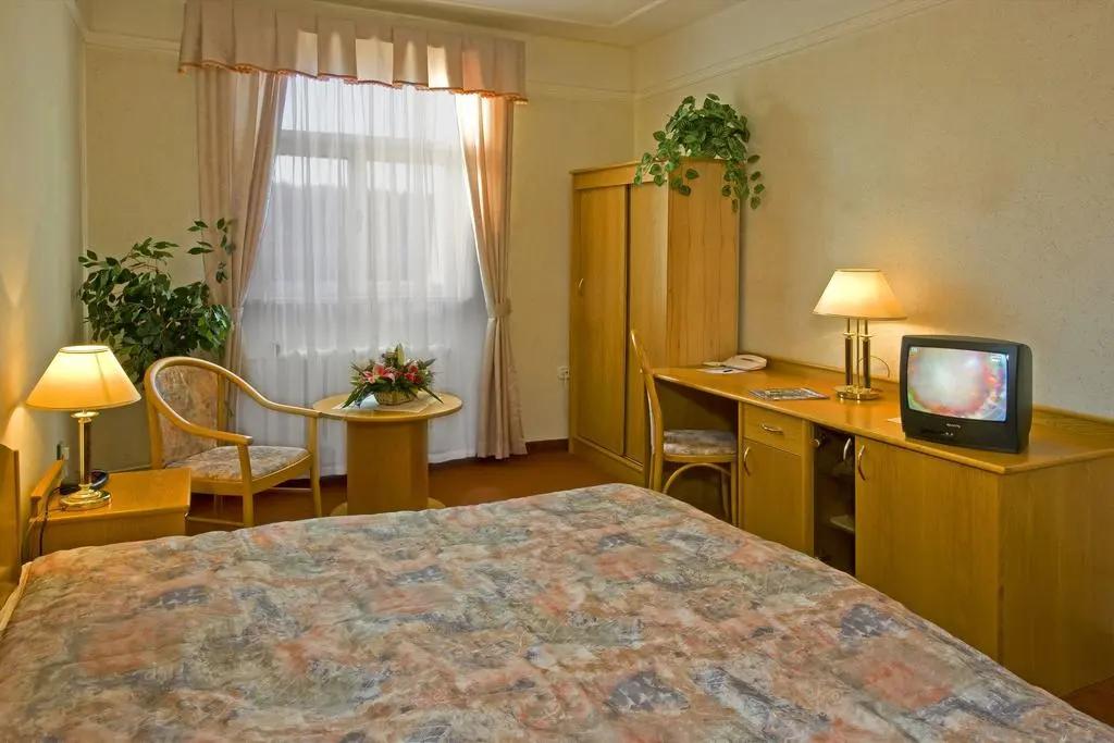 - Сьют (4): Размер номера 25 м2, двухкомнатный апартамент, гостиная и спальня, ванная комната с ванной или душевой кабиной, туалет, сейф, телефон, Wi-Fi, минибар, телевизор со спутниковыми программами (российские программы ОРТ, РТР), фен, халат, тапочки