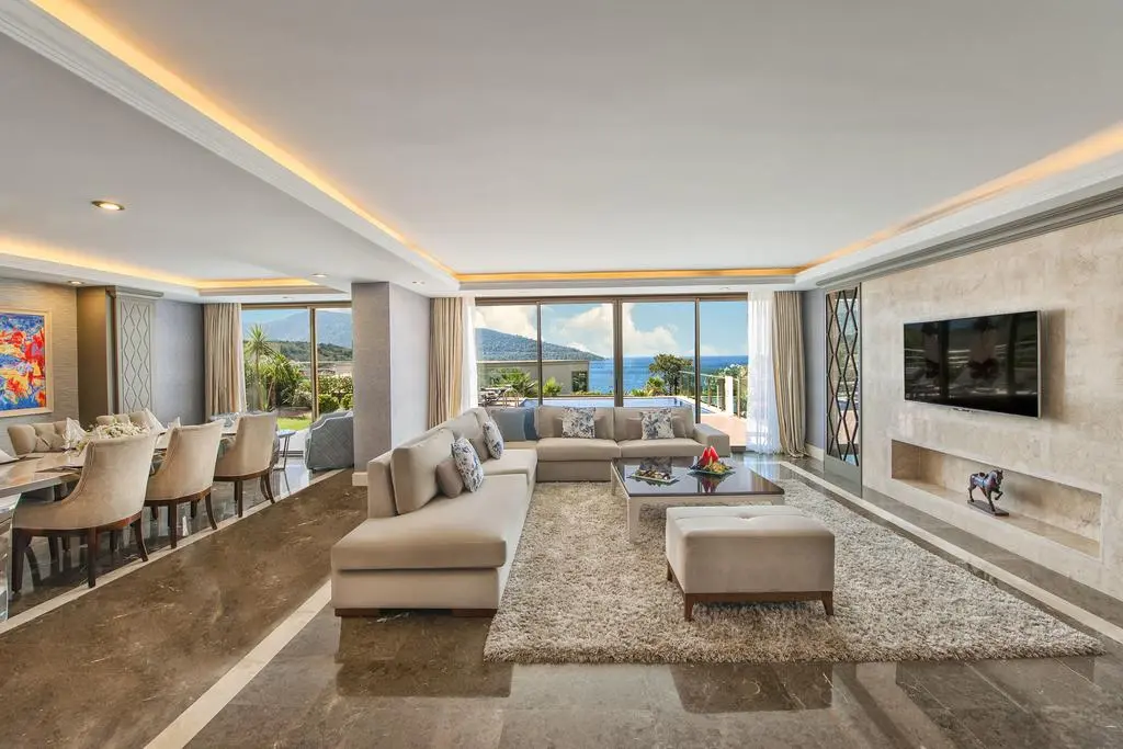 Presidential Villa (вид на море; 1-й этаж: открытый бассейн, терраса, гостиная, 2 спальни с ванными комнатами и гардеробными, кухня; 2-й этаж: 4 спальни с дверью и c ванными комнатами, балкон; отдельная зона на VIP пляже; макс. 12 чел., 800 м², Vip-сервис).