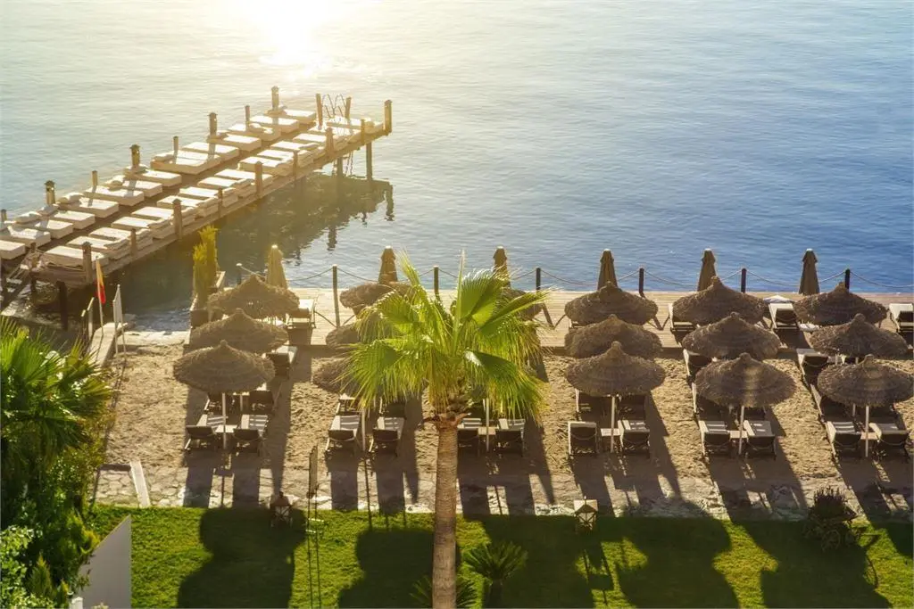 На пляже зонтики, шезлонги, матрасы, полотенца: бесплатно.