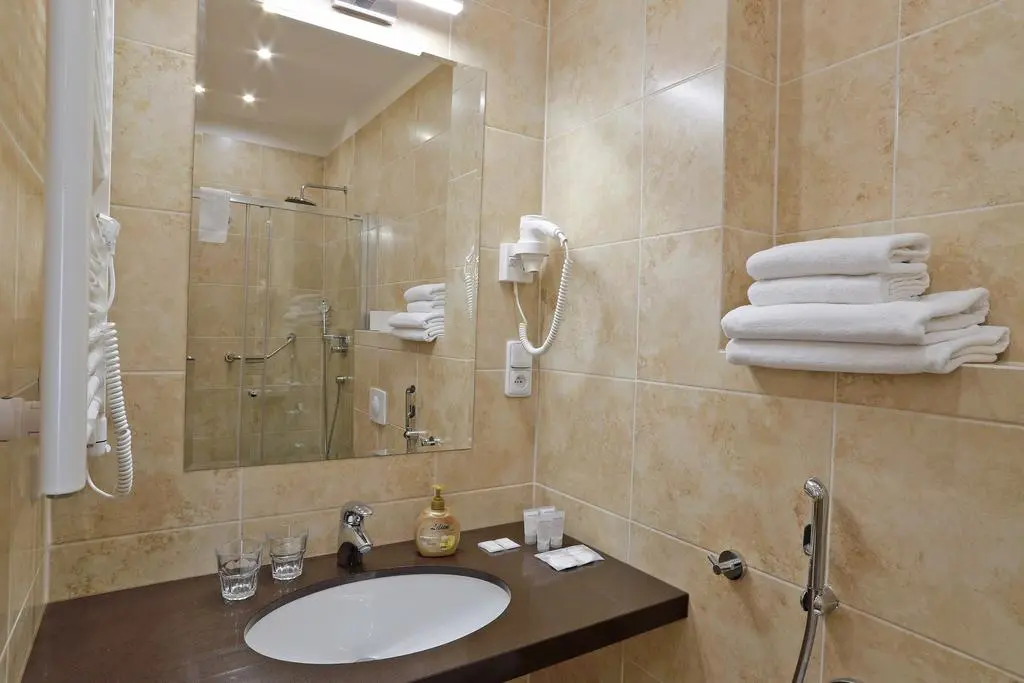 В номерах: Ванная комната с душевой кабиной, туалет, телефон, холодильник, телевизор с сателитными программами (российские и украинские программы), фен , сейф в каждой комнате бесплатно.