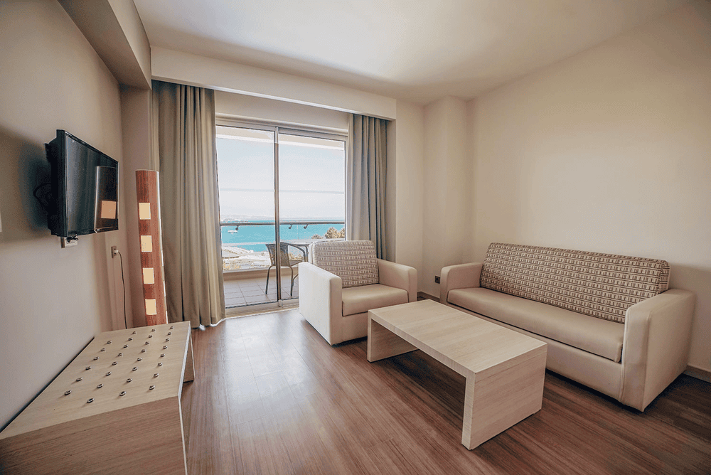 Family Room Sea View (46-50 м2, 2 балкона, вид на море, 2 спальни с 1 двуспальной кроватью и софой 190*70, 1 ванная комната, макс. 2+2 чел.);