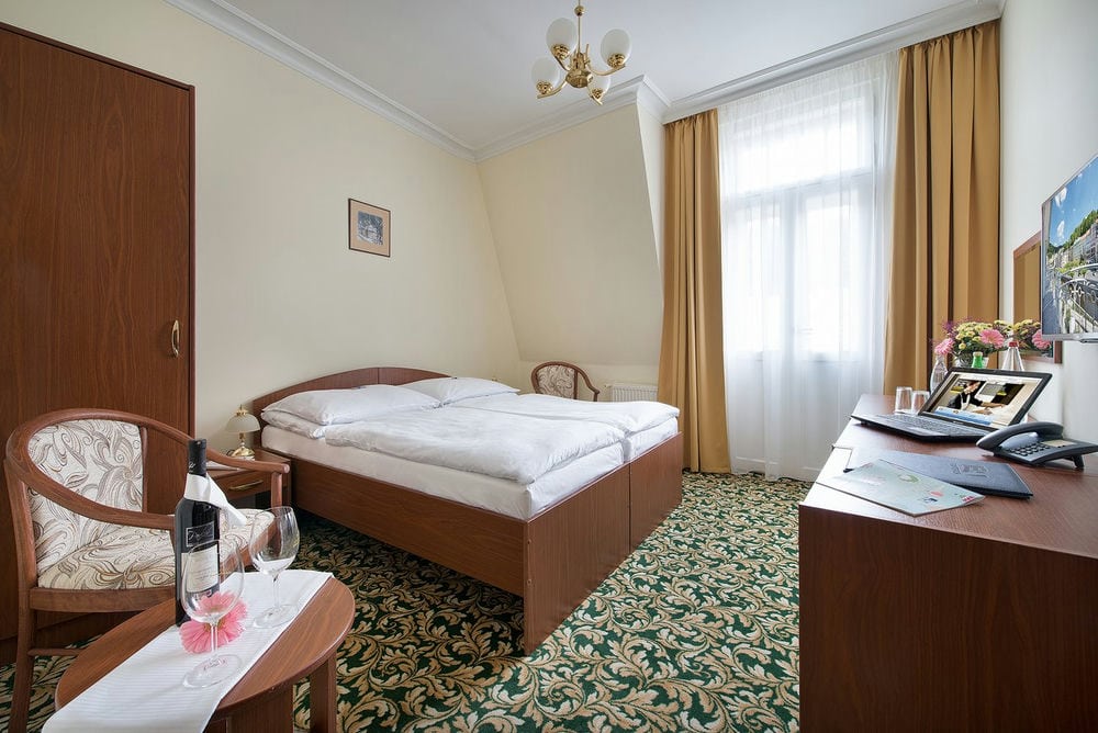 расположен в самом сердце курортного места для прогулок, в одном из самых известных исторических зданий города Карловы Вары – всего в 100 метрах от источника «Вржидло». На первом этаже отеля находится славное кафе «Элефант», в котором проводили свое свободное время молодой И. В. Гёте, Людвиг ван Бетховен, император Франциск I. с супругой и императрицей Марией Людвигой. В настоящее время отель «Элефант» располагает 18-ю двухместными номерами, отвечающими самому высокому стандарту трех звезд. Благодаря своему расположению отель предоставляет своим гостям возможность соблюдать специальный питьевой режим, который является основой санаторного лечения в Карловых Варах. В непосредственной близости от EA Hotel Elefant*** расположена станция фуникулера. На канатная дороге можно подняться к комплексу Диана, известный своим рестораном и смотровой площадкой. Здесь Вы можете насладиться уникальным видом на город и его окрестности.