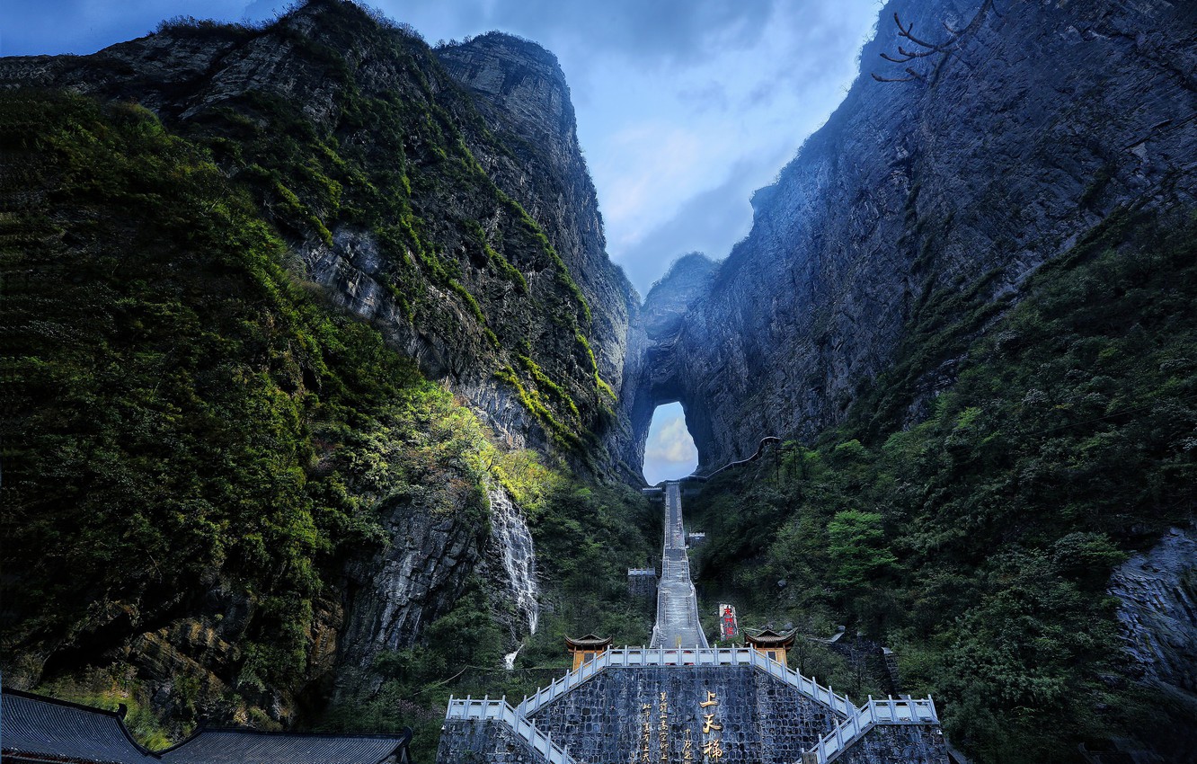 Гора Тяньмэньшань находится в Китае, на северо-западе провинции Хунань, в районе Чжанцзяцзе. Расположена в Национальном парке горы Тяньмэнь. Название гора получила из-за пещеры «Небесные врата» (Тяньмэньшань), которая образовалась в 263 году после разрушения части скалы. |